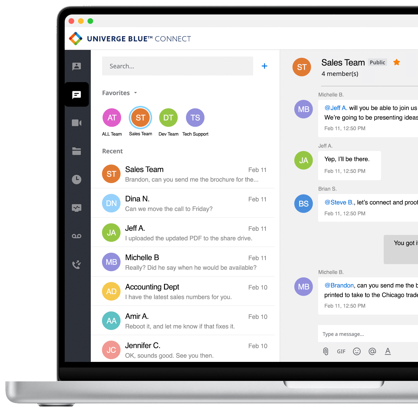 Univerge Blue Connect is a total communication solution, bringing together enterprise-level phone system features with mobility apps, team chat, and collaboration tools.