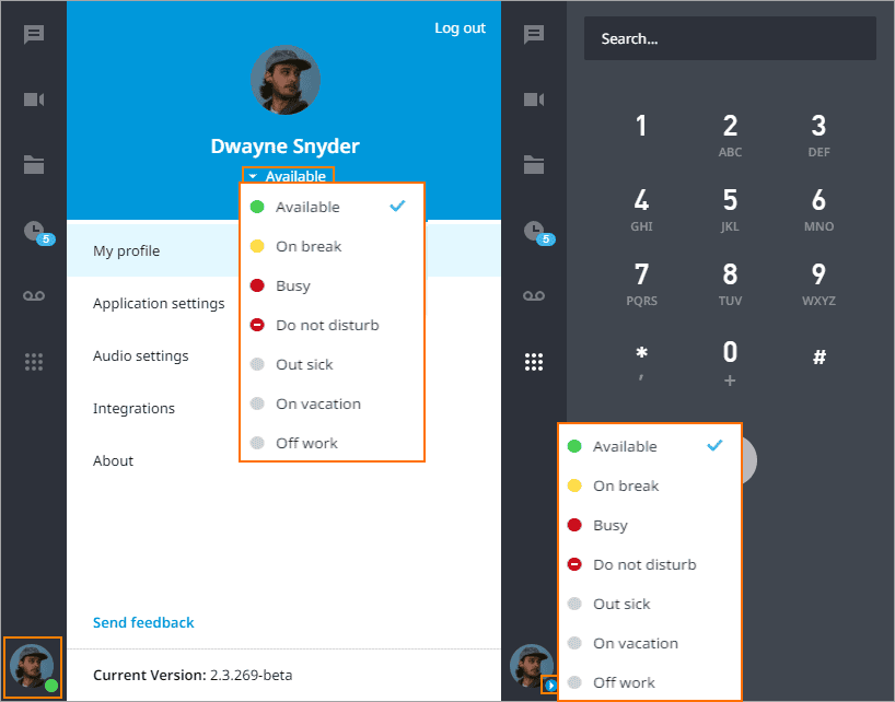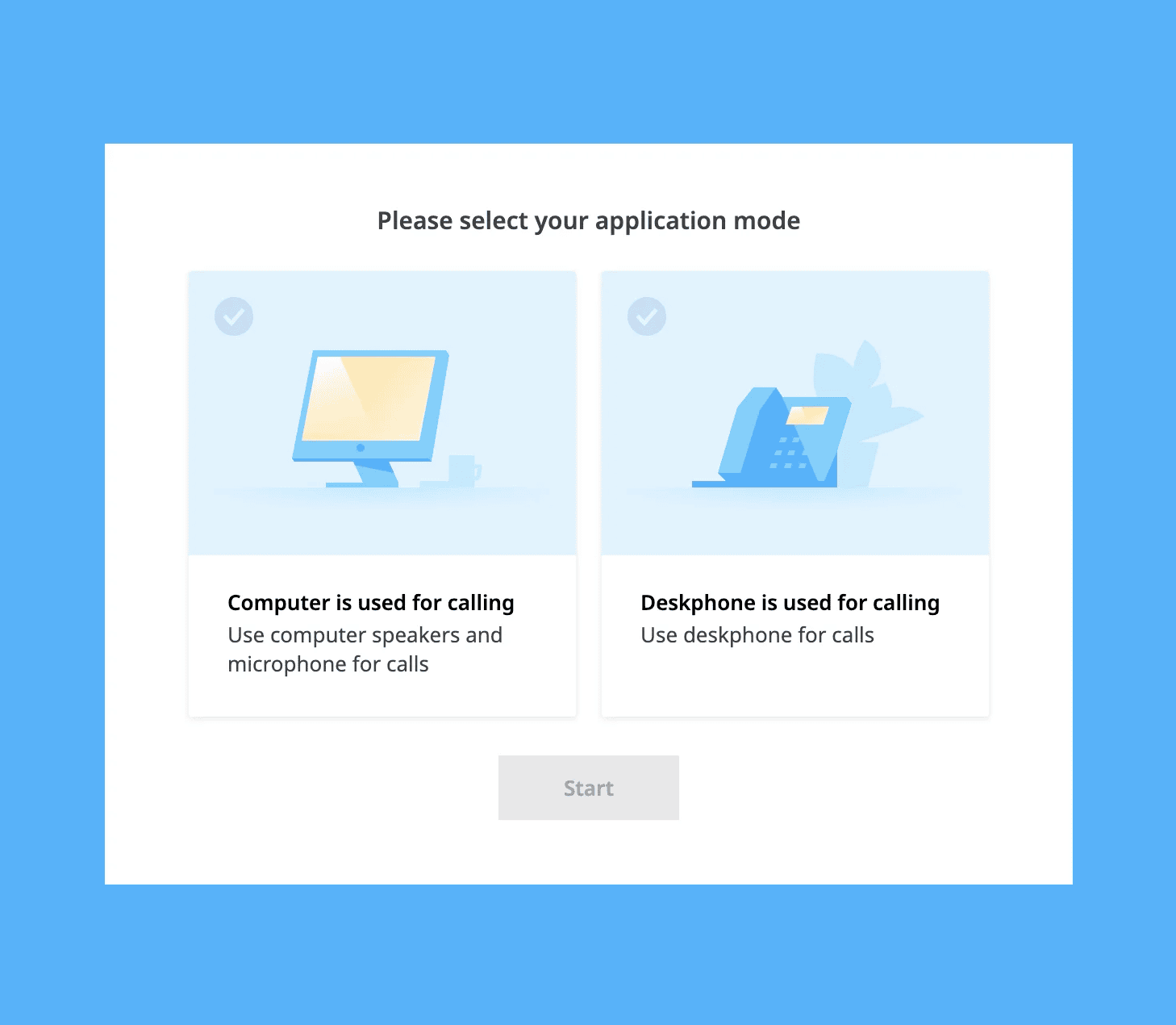 In this mode, the application works as its own calling device. You can make, receive, and control phone calls directly through the application. A desk phone can be used in addition to the softphone, but is not required. This is a great option for a remote worker using their computer and a headset.