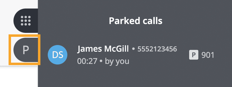 - Desktop app users can also visually monitor parked calls, and can click on the parked call to pick it up