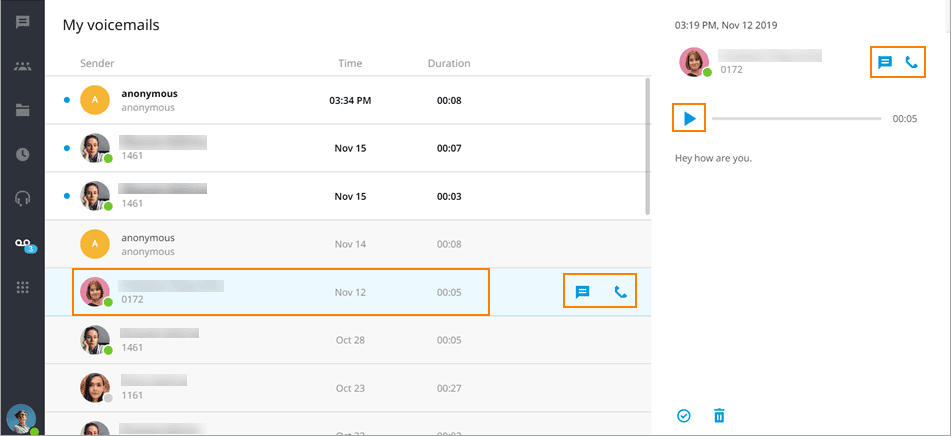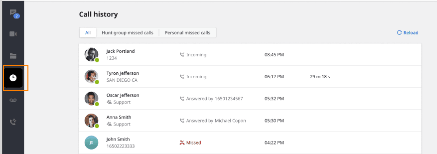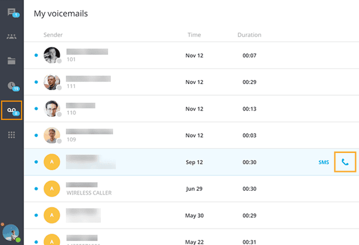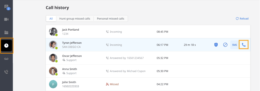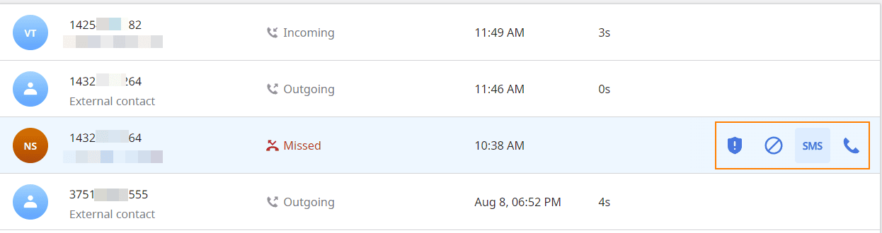 - Hover over the phone number to reveal more options including call back, report spam, and block number