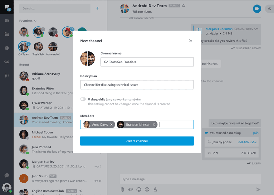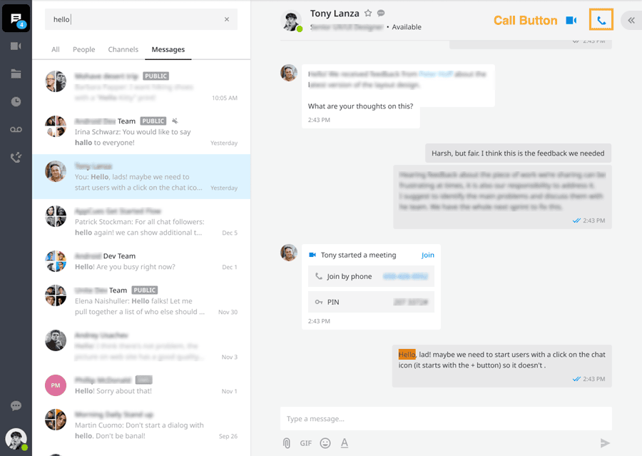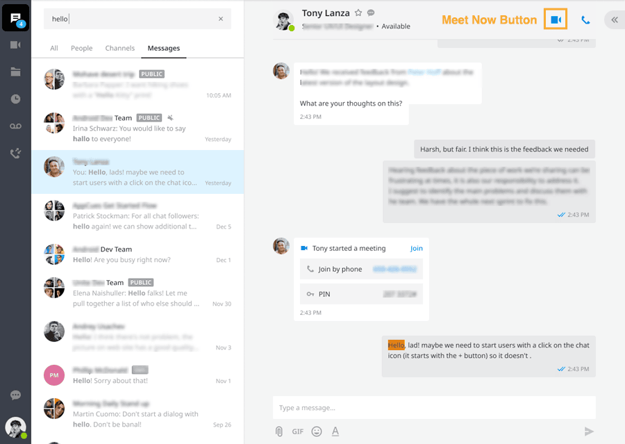 Use this when when you want quickly start a meeting with teammates, and they will instantly receive an invitation right through chat.