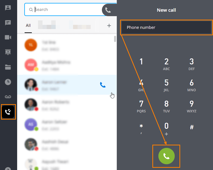 (You may click digits with your mouse or type them with your keyboard) - Click the green phone icon to place the call
