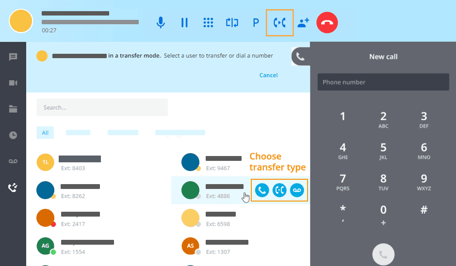 The blind transfer allows you to transfer the call without having a conversation with another party.
