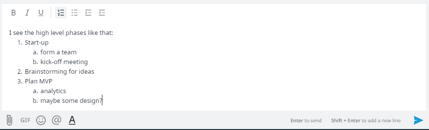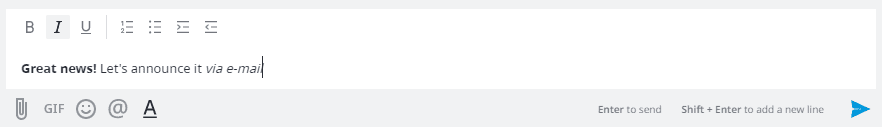 - Formatting options include: bold, italic, underline, and bulleted or numbered lists