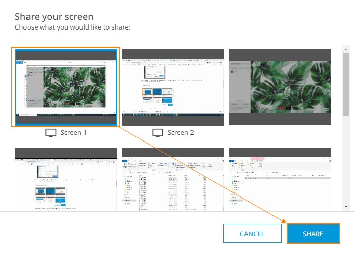 - If you have multiple monitors, you can select the specific screen you wish to share