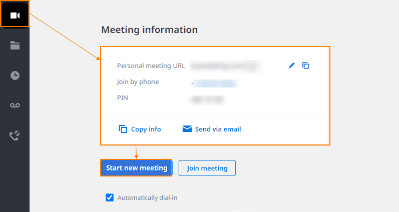- Click the Meeting info link, in the bottom left-hand corner of the window
