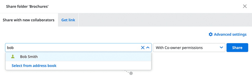 - Use the permissions dropdown menu to specify what these users can do with the files and folders contained inside this shared folder (co-owner, modify, view-only)