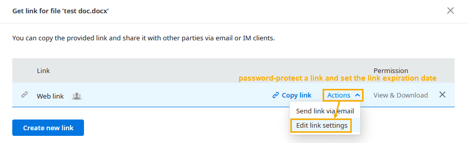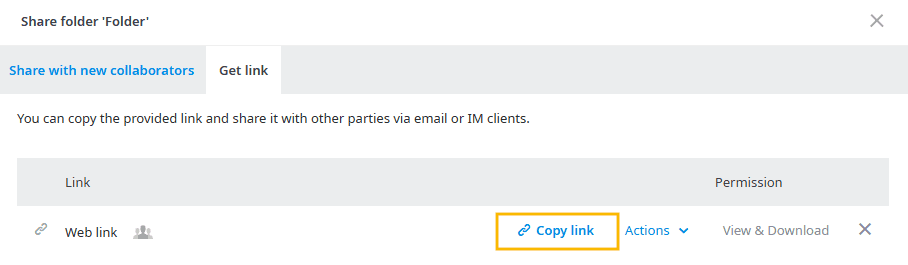 Once a web link has been created, you can come back and copy it anytime, by clicking the "Get link" button.
