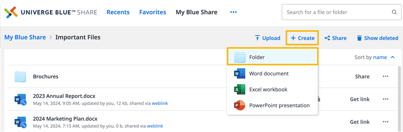 A shared folder is a folder which you can share with other Connect users. When you share a folder with a teammate, they will see the folder within their SHARE application. You control what these users can do with the files, such as modify or view only.